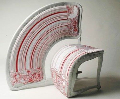 这是设计师Tom Price所设计的尼龙椅。他把很长的尼龙绳缠绕成一个大圆球,然后把上面的部分点燃融化掉,烧到一定程度之后拿一个模子压一下,一只这样独具创意设计的椅子就诞生了。