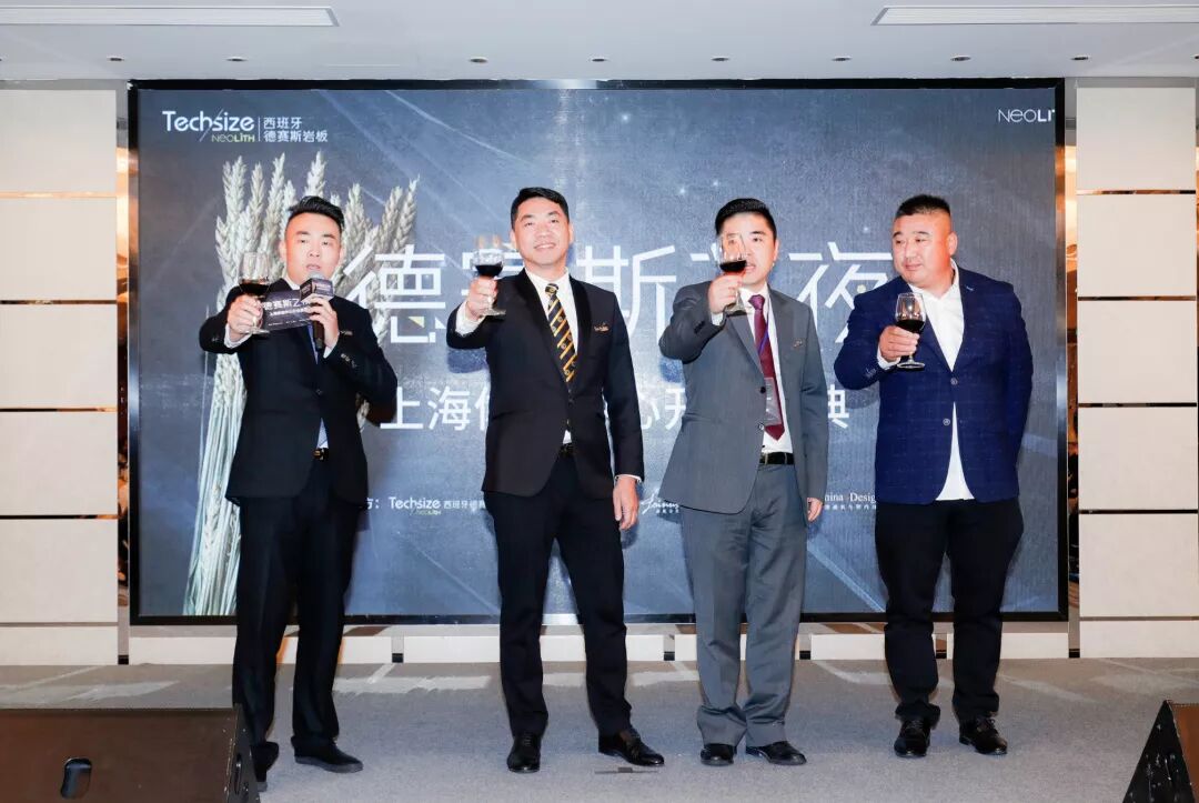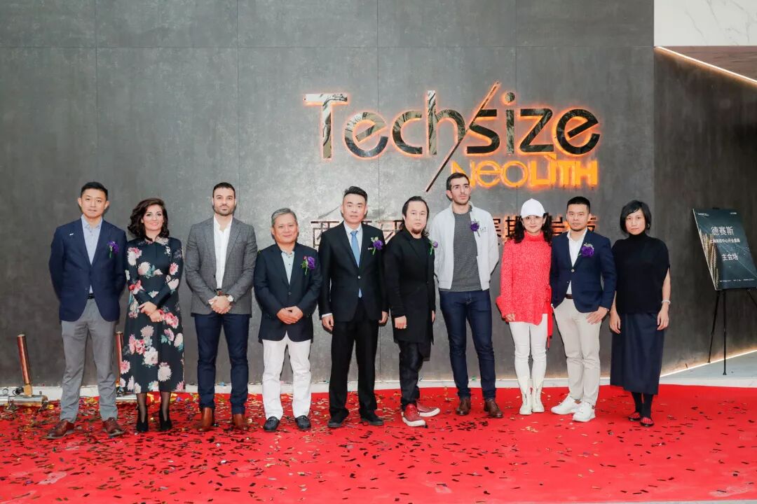 众多来宾为德赛斯岩板上海体验中心进行剪彩,