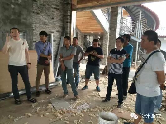 随后,大家来到了生态园的餐饮项目工地现场,西安设计师与咸阳设计师围绕本项目进行了设计交流和技术沟通,为生态园的发展规划提出了很多中肯的意见。