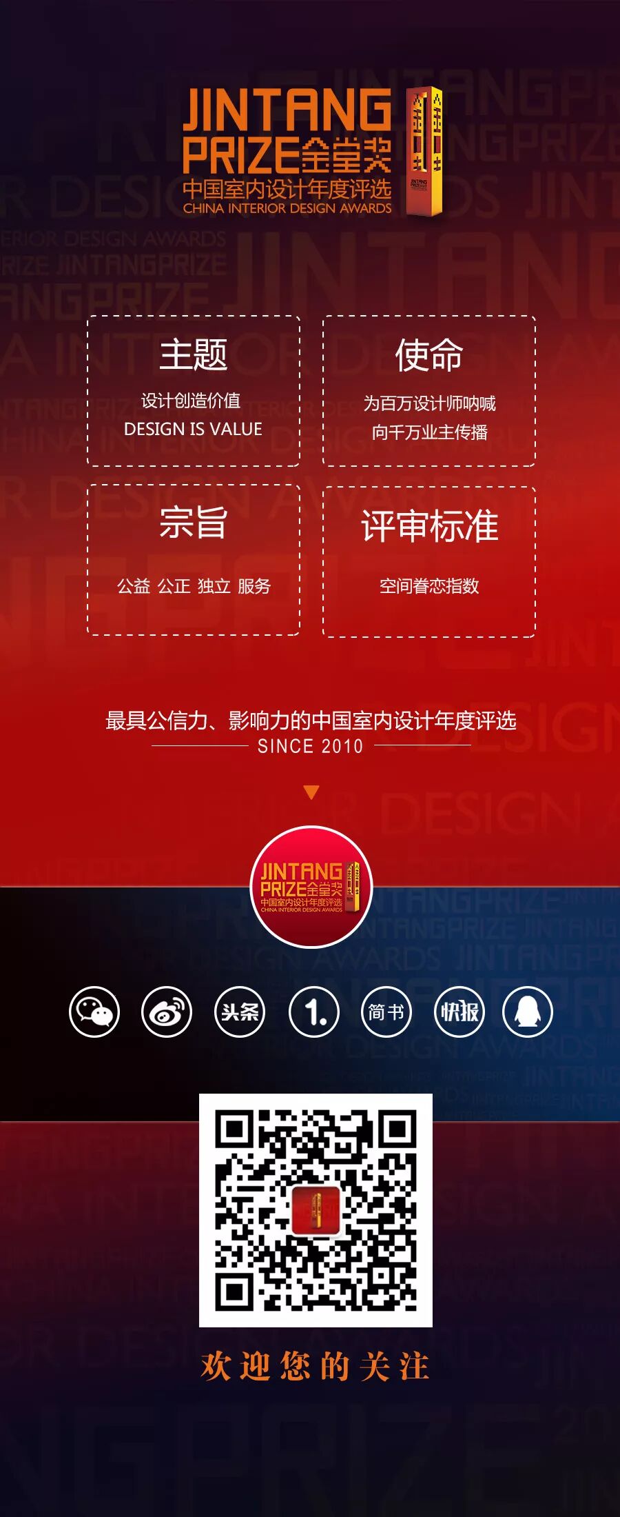 “金堂奖”中国室内设计年度评选是中国最具规模和影响力的室内设计行业年度评选是以倡导“设计创造价值”为价值观,以“为百万设计师呐喊、向千万业主传播”为使命的行业公益评选活动。